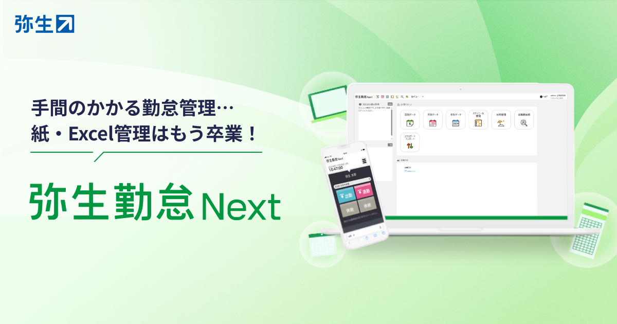 弥生株式会社(本社:東京都千代田区、代表取締役 社長執行役員 兼 CEO:武藤健一郎、以下「弥生」)は、クラウド勤怠管理システム「弥生勤怠 Next」の単体提供を開始しましたのでお知らせします。これまで「弥生勤怠 Next」は、クラウド給与サービス「弥生給与 Next」とあわせて提供してきましたが、今回の単体提供開始により、勤怠管理のみを導入したい中小企業にも、より柔軟に選択いただけるようになります。