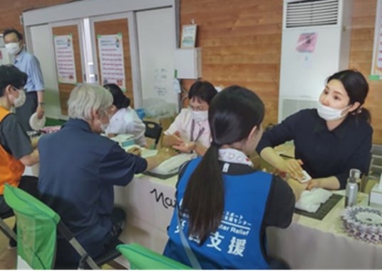 今回の活動は、能登半島地震発生以降3回目の開催でしたが、豪雨などの重なる災害での疲労や、長引く避難所生活や仮設住宅生活、また仮設住宅から再度避難所生活に戻るといった被災者の心の負担を少しでも和らげたいと考え、当社が設立した一般社団法人日本介護美容セラピスト協会のビューティタッチセラピストと北陸地域のナリス化粧品販売員の有志の参加で被災者のケアに当たりました。サービスを受けた被災者からは、「話を聞いてもらえるだけでも、少し落ち着けた」「豪雨で流れ込んだ自宅の土砂を掻き出してきたので、マッサージが気持ちよかった」といった声が聞けました。