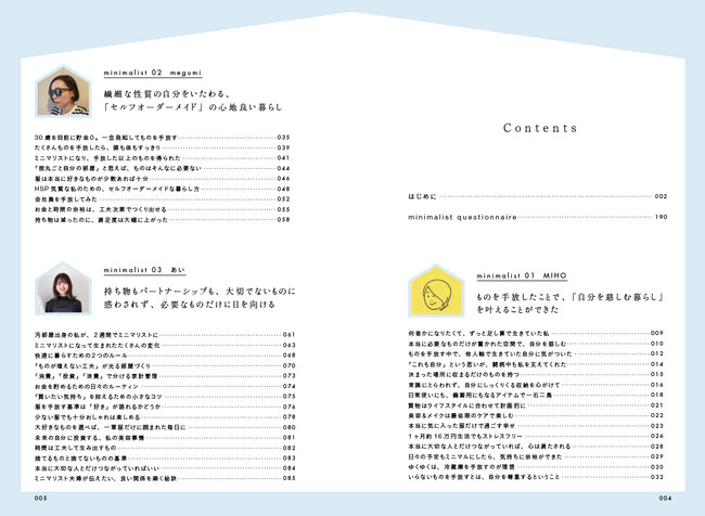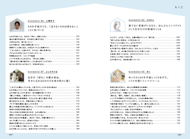 本書に登場するのは、日々ミニマルな暮らしをSNSで発信する、7名の人気女性インフルエンサーたち。