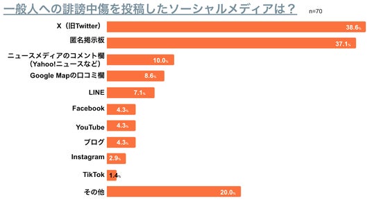■ 一般人への誹謗中傷、「X」と「匿名掲示板」が抜きん出る