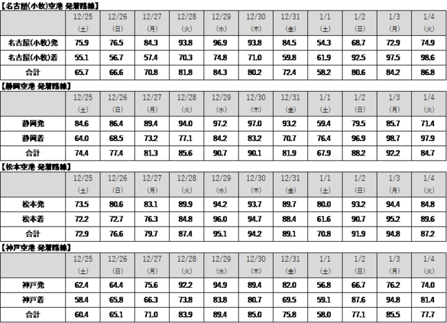 ■路線別の搭乗実績[2021年12月25日(土)~2022年1月4日 (火)]