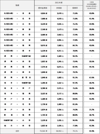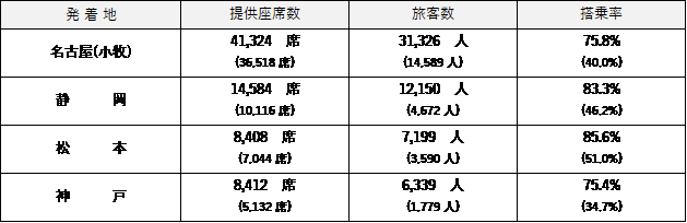 ※ 静岡=札幌(新千歳)、熊本、神戸=花巻は、2021年3月以降に運航開始したため、2020年度の実績はございません。