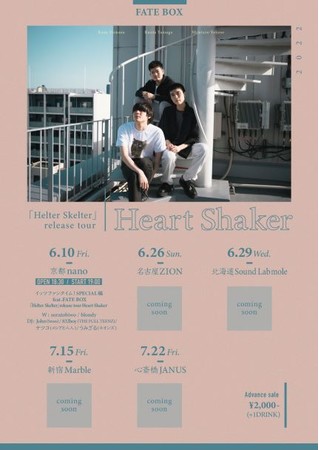 大阪を中心に活動中のスリーピースバンド「FATE BOX」が現体制初となるEP「Helter Skelter」の発売を発表し、それに伴い5か所を周るツアー『Heart Shaker』も開催することを発表した。