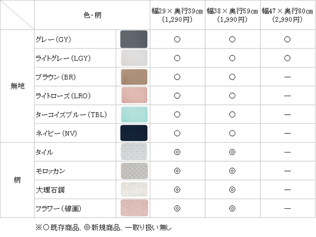 選べるカラー・デザインが豊富になり、よりご自宅のルームにあわせたコーディネートをお楽しみいただけます。脱衣所や洗面所はもちろん、キッチンなど様々なシーンでご使用いただけます。ぜひお試しください。
