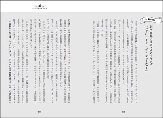 作品としては、黎明期の『ショウ・ボート』から、2025年4月開幕の『バック・トゥ・ザ・フューチャー』までを取り上げており、本書1冊でミュージカルの「これまで」と「これから」がわかります。