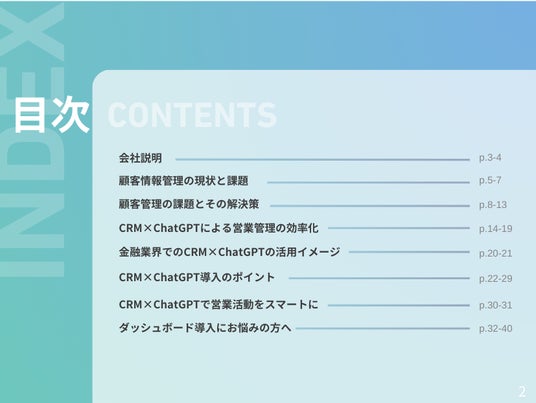 株式会社ベクトル(本社:東京都港区、代表取締役会長兼社長:西江 肇司、東証プライム:6058)の子会社であるOwned株式会社(東京都品川区、代表取締役社長、石井翔、以下「当社」)は、金融業界向けに「CRM×ChatGPTで営業管理をする方法をまとめたレポート」2025年3月版(全40ページ)を無料公開いたしました。
