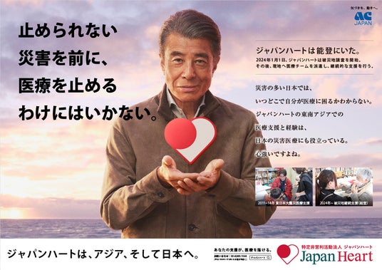 日本発祥の国際医療NGOである特定非営利活動法人ジャパンハート(東京都台東区 理事長:吉岡春菜)は、公益社団法人ACジャパン(東京都中央区 理事長:鳥井信宏)の2025年度支援キャンペーンに採択され、その新たな広告が本日7月1日(火)よりスタートします。