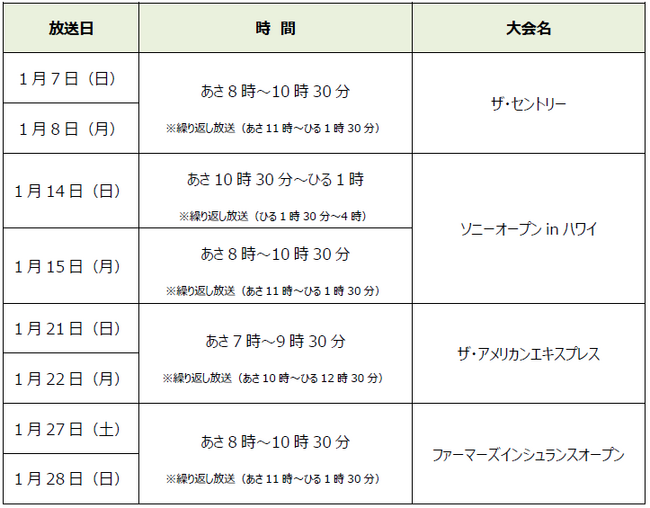 日本で馴染み深い「ソニーオープンinハワイ」を皮切りに、各大会を無料生中継。