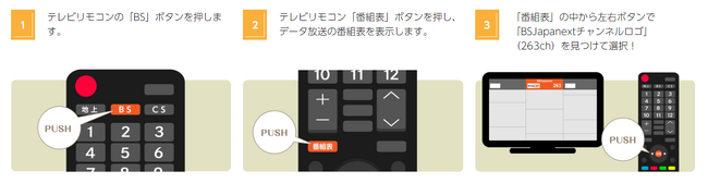 無料のBS放送局(BS263ch)『BSJapanext』(読み:ビーエスジャパネクスト)では