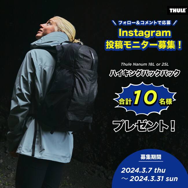 ゼット株式会社(本社/大阪市天王寺区、代表取締役社長/渡辺裕之)が取り扱う『THULE(スーリー)』ブランドの公式インスタグラムアカウント(@zett̲thule)にて、2024年3月7日(木)から2024年3月31日(日)の期間中、THULE BAGの魅力をインスタグラムで発信してくれる方を募集するキャンペーンを開催中です。