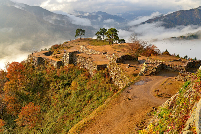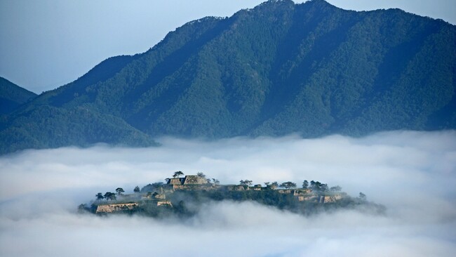 雲の上に浮かぶ城、日本百名城のひとつ「竹田城」。雲海に包まれる神秘的な姿から「天空の城」、「日本のマチュピチュ」の名で知られ、多くの人が足を運ぶ観光名所となっています。特に秋頃から冬にかけて、よく晴れた朝には朝霧を纏い、幻想的な景色が広がります。