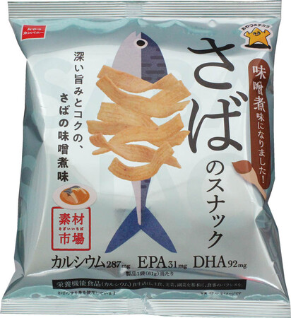 商品名:素材市場 さばのスナック(深い旨みとコクの、さばの味噌煮味)