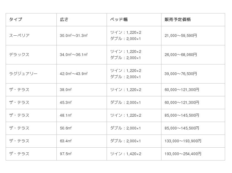 ※販売予定価格は消費税・サービス料を含み、2名1室利用の場合の1室価格です。価格は日程により変動します。