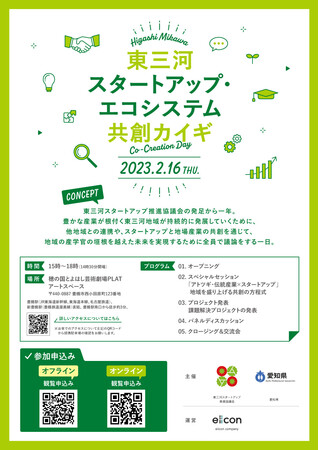 オープンイノベーション・新規事業創出支援をするeiicon company(所在地:東京都港区南青山、代表:中村 亜由子)は、2023年2月16日(木)に開催する『東三河スタートアップ・エコシステム共創カイギ』の参加者募集を開始いたします。