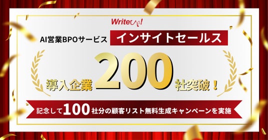 株式会社ライトアップ(証券コード:6580、東京都渋谷区、代表取締役 白石 崇)は、AIを活用した営業BPOサービス「インサイトセールス」の導入企業が200社を突破したことをお知らせいたします。