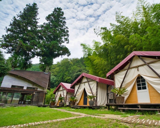 合掌造りの建物がシンボル。今話題のジブリパークからわずか3分、日本の昔懐かしい日常文化に触れることができるグランピング・BBQ施設。