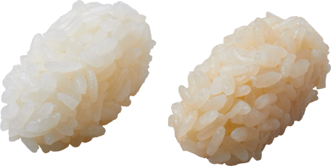 改良した“新・赤シャリ”は、2年間じっくりと熟成させた酒粕を原料とした赤酢を使用しており、今までご提供していたシャリよりも赤酢の割合を増量しました。独自の配合でブレンドすることで、まろやかな酸味とコクがより強く感じられる“赤シャリ”に進化いたしました。定番メニューの「めばちまぐろ」や「真いか」といった握りだけでなく、「鉄火巻」等の巻物も、ご提供する全てのシャリをグレードアップした“赤シャリ”でご提供いたします。また、“赤シャリ”は全国の漁場から仕入れる豊洲直送の魚介類(※2)とも相性が抜群です。“赤シャリ”の酸味とコクが、ネタの旨味をさらに引き出し、より本格的な寿司をお楽しみいただけます。