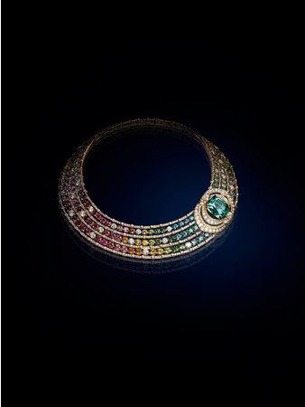 ピンクとグリーンのトルマリン、シトリン、アクアマリン、タンザナイト…ルイ・ヴィトンはアイコニックな錠前を再解釈した「ル・ミュルティパン」のネックレスに、100個を超えるカラフルなストーンを散りばめました。