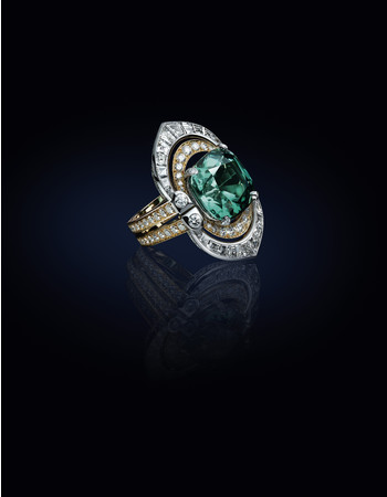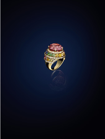これらに加えて本テーマは、マルチカラーのトルマリンのイヤリング2点と、厳選された輝かしい色調のトルマリンをセンターストーンとする絢爛豪華なリング4点によって完成します。