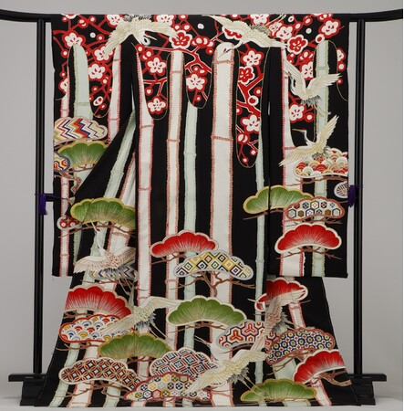 「上品會(じょうぼんかい)」は、日本の文化が培ってきた「織(おり)・染(そめ)・繍(ししゅう)・絞(しぼり)・絣(かすり)」の染織五芸の向上を目指し、1936(昭和11)年に高島屋が創設した現在も続く呉服の展示会です。飜古為新(ほんこいしん)*の精神の下、古典や伝統を踏まえながらも、それらに縛られることなく制作された作品は、染織の世界に新風を吹き込みました。その志は現在も受け継がれ、「秋場(あきば)、岩田(いわた)、川島(かわしま)、大羊居(たいようきょ)、千切屋(ちきりや)、千總(ちそう)、矢代仁(やしろに)」の八名家の同人とともに、染織五芸の最高峰を目指して意欲的に挑戦し続けています。