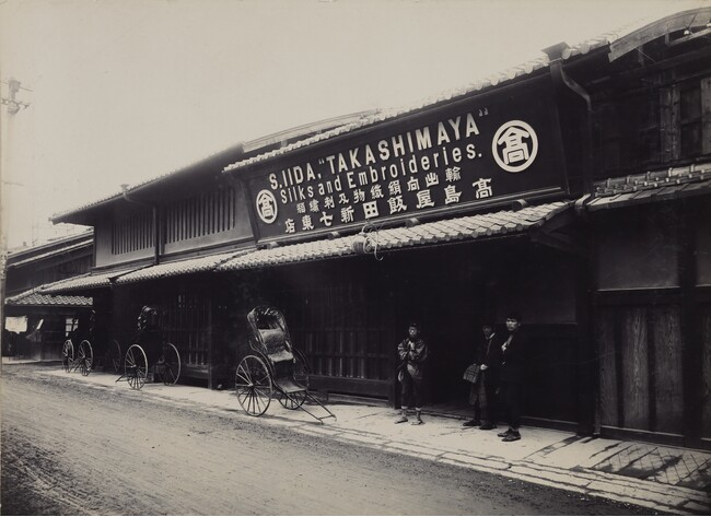 1831(天保2)年に京都で創業した高島屋は、明治に入ると次第に外国人客を迎えるようになり、1893(明治26)年に京都、1900年には横浜に貿易店を開店し、貿易業を拡大しました。その後、世界各国の博覧会への出品・受賞を重ね、“美術染織の高島屋”の名を広めることになりました。