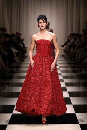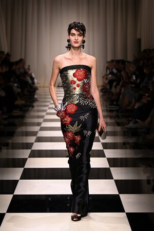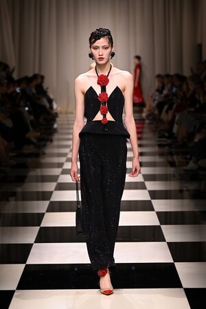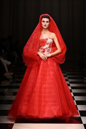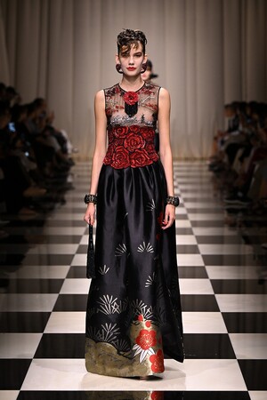 魅惑的でミステリアスな深紅の薔薇。ブラックやゴールドの煌めくアクセントで美しく彩られた、艶やかな薔薇が咲き誇ります。ヨーロッパからアジアへの軌跡が細長いシルエットを通して描かれ、ロマンティシズムの象徴ともいえる薔薇を新しいアプローチで再解釈していきます。