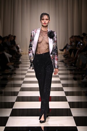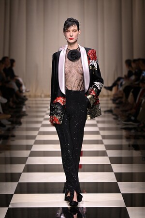 ラインはシャープでありながらしなやか。コンパクトなジャケット、ロングスカート、落ち感のあるパンツ、ドレスがシルエットを象り、足元には揺るぎない自信を象徴する細く高いヒール。リズミカルでジオメトリックなパターン、眩い光の装飾、異国の文化が融合し描き出された薔薇のモチーフが、魅惑的な女性を表現しています。