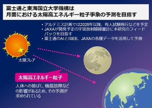 富士通株式会社(注1)(以下、富士通)と、岐阜大学と名古屋大学を運営する国立大学法人東海国立大学機構(注2)(以下、東海国立大学機構)は、国立研究開発法人宇宙航空研究開発機構(注3)(以下、JAXA)と、「説明可能なAI 技術を活用した月・火星探査に向けた太陽放射線事前予測技術の開発」に関する共同研究を2025年2月1日から2026年3月31日まで実施します。