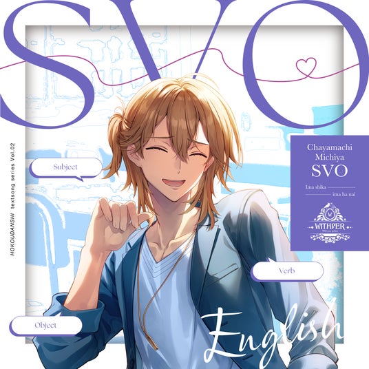 ファッショナブルなインフルエンサーとしても活躍する英語担当の補講男子、茶屋町義也(ちゃやまち・みちや)の記念すべきキャラクターソング1曲目は、株式会社Gakken監修のもと英語特有の語順を表す「文型」についてさわやかに歌唱するエモーショナルソング。