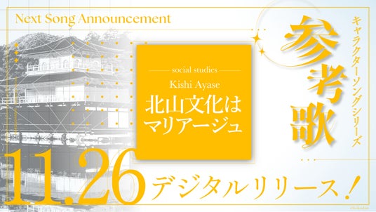 次回リリースは茶屋町義也と同ユニットに所属するWITHPER・社会担当の貴志礼世 (CV.岡本信彦) が歌唱する『北山文化はマリアージュ』!