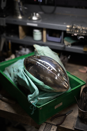 ティファニーがこのトロフィーの制作をするのは、今年で55年目となります。ティファニーが誇る卓越したクラフトマンシップと芸術性を証明するヴィンス・ロンバルディ・トロフィーは、職人により手作業で作り上げられてきたすべてのスポーツトロフィーと同様に、スポーツにおける最高の功績を讃える象徴であるだけでなく、ティファニーの創造性と伝説的な技術が映し出された芸術品です。