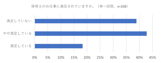 ・約4割が保育士の仕事に満足していないと回答し、保育士の仕事に満足している保育士の割合は2割未満にとどまった。