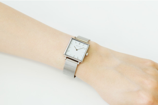 洗練されたスクエアケースにシンプルなカラーリングがタイムレスなデザインで、フェイスを守る風防には透明度が高く傷が付きにくいサファイアガラスを採用。