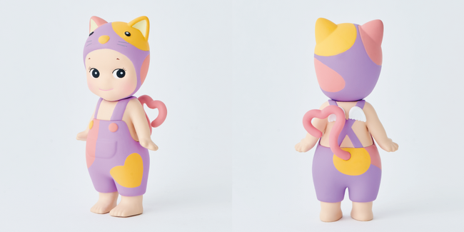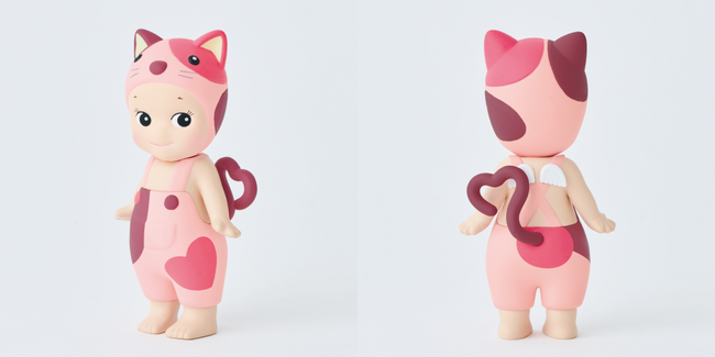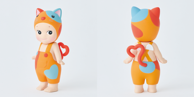 ポップなカラーリングに大きなハートがプリントされたオーバーオール。そして、ハートのかたちをした長い尻尾がチャームポイントのラッキーフィギュアは全3種類。