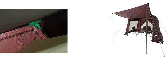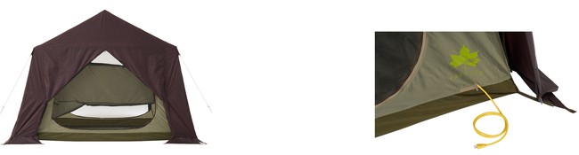 インナーテントは通気性に優れたC型ドア採用だから、暑い時期でも室内のムレを防ぎ快適な空間を実現するほか、電源コードの取り込み口も完備。ジッパー付きで冷気を遮断することも可能。