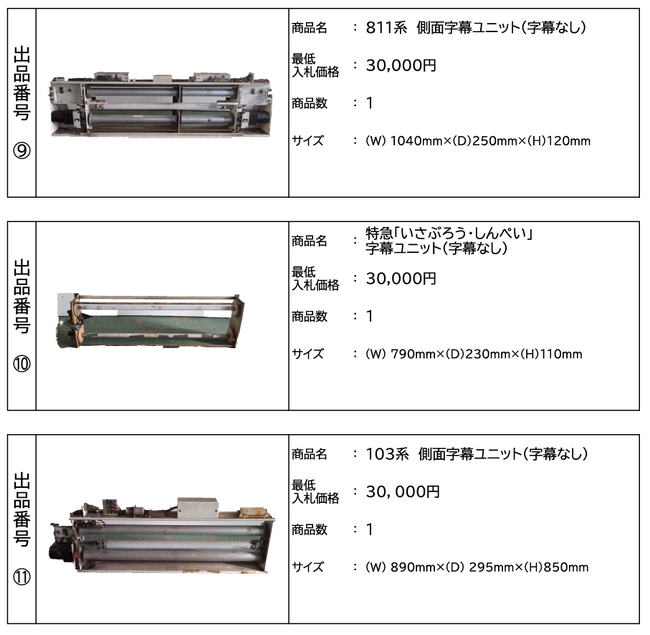 鉄道部品現地即売会 出品予定商品一覧「入札販売」
