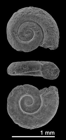 Stuoraxis属は、直径1mm程度の平巻き型の巻貝で、原始的異鰓類(非公式群)に含まれるグループです。これまでペルム紀~ジュラ紀の地層から5種が知られていました。S. kaseiは、原殻に見られる肋の凹凸が緩く、数も少ない点で既知の5種とは異なります。今回の発見は、白亜紀の地層からの初産出であり、最も新しい化石記録となります。