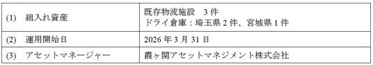 霞ヶ関キャピタル株式会社(本社:東京都千代田区、代表取締役社長CEO:河本幸士郎、以下「当社」)は、当社子会社である霞ヶ関アセットマネジメント株式会社が既存物流施設3件を組入れ資産としたバリューアップファンドを組成しましたことを、下記のとおりお知らせいたします。
