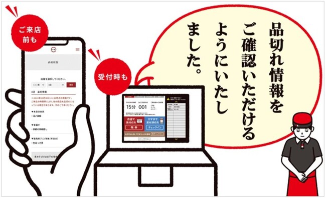 行きたい店舗に食べたい商品があることを確認したうえでご来店いただけるよう、公式サイトやアプリで品切れ情報をご確認いただけるようにいたしました。販売状況を随時更新し、ご来店時にも、万が一品切れ商品がある場合には店舗の案内台で表示いたします。
