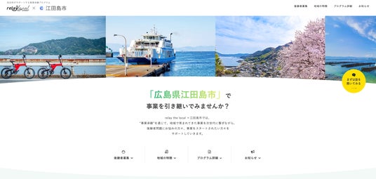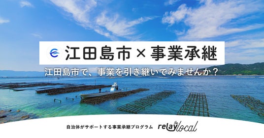 このたび江田島市とrelayは、移住・定住を伴う第三者事業承継の推進に向けて、共に取り組んでまいります。提携の第一弾として、江田島市に特化した後継者募集案件を掲載した「relay the local 江田島市」を開設しました。今後、江田島市に相談が寄せられる後継者不在事業者の情報をrelayに提供いただき、「relay the local 江田島市」への掲載を行います。