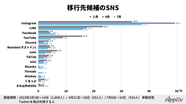 他SNSへ移行を検討した人は39.5%、前回調査から6.0pt増加
