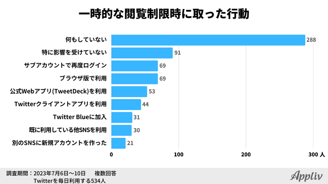一方で、一時的な閲覧制限に対し「何もしていない」と回答した人は288人(53.9%)で、過半数を上回る結果となっています。