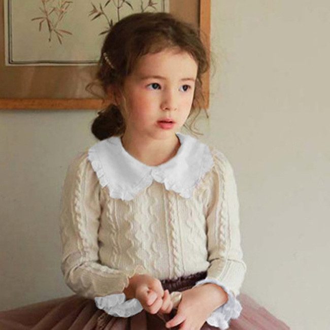 トップス カットソー 付け襟 全4色 アンシャンテプティセレクト商品 韓国子供服 韓国子ども服 韓国こども服 デザイン編み 女の子 レース キッズ こども 幼児