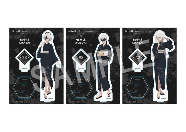 TVアニメ『NieR:Automata Ver1.1a』×極楽湯・RAKU SPAコラボ「特別任務 極楽湯デ超回復セヨ」が開催!湯上り浴衣姿の描き下ろしイラストを使用した「木札ストラップ」や「マウンテンボトル」など新作グッズも登場します!