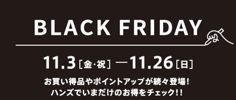株式会社ハンズ(本社:東京都新宿区)は、11月26日(日)までの期間中、ハンズ各店・ネットストアにて「ブラックフライデー」セールを開催しております。