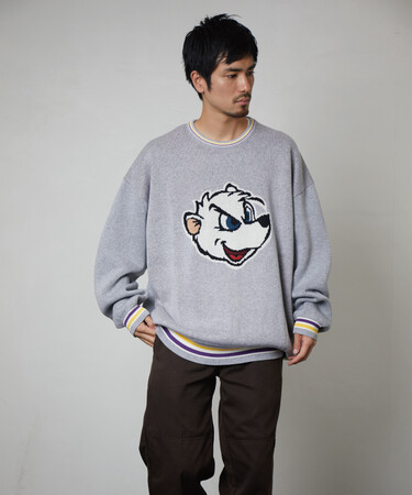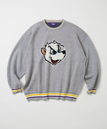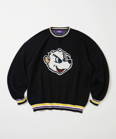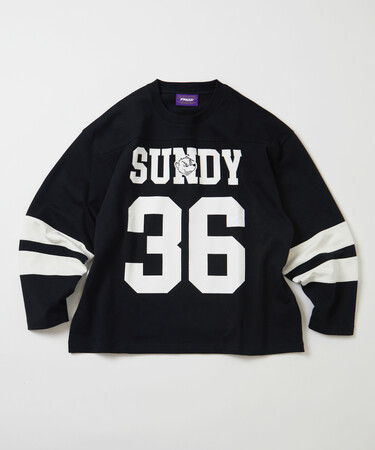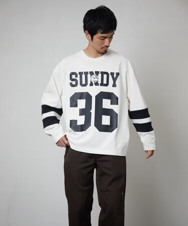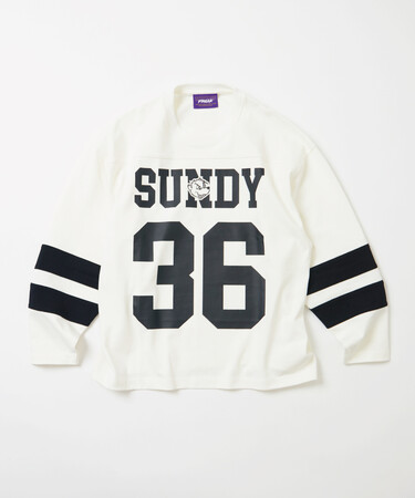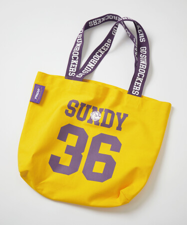 第一弾の注目アイテムは、サンロッカーズ渋谷のマスコットキャラクターであり、サンロッカーズ渋谷のファンだけでなく幅広い層に愛されている「サンディー」とのコラボレートアイテムが登場します。サンディーの背番号36がフロントに大きくプリントされたフットボールジャージーや、サンディーの愛くるしい顔が大胆に編みこまれたジャカードニットが登場。また、サンロッカーズカラーを大胆に使用したトートバッグは、ウェアで使われているサンディーの顔と背番号が両面にプリントされています。