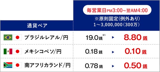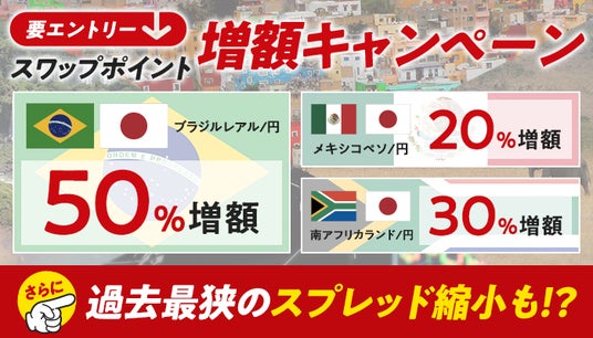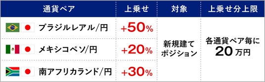 ~ブラジルレアル/円で50%、メキシコペソ/円で20%、南アフリカランド/円で30%増額!~