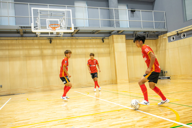 名古屋グランパス 永井謙佑選手、内田宅哉選手、甲田英將選手は、体育館でマーカーレスモーションキャプチャーの測定を体験しました。マーカーを装着せずに動作を計測することが可能、複数人を一度に計測可能なことから、3選手でパス回しからのシュートを実演。その様子を計測しました。