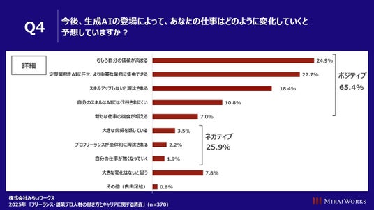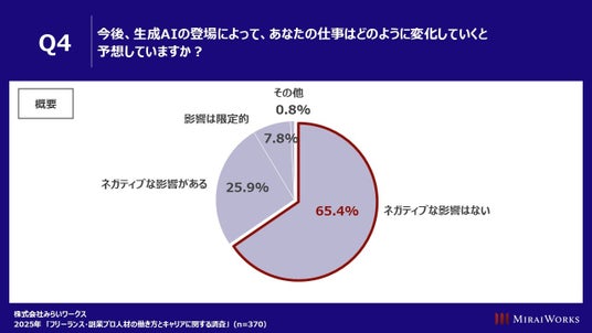 ■ 生成AIが登場しても、自分の仕事にネガティブな影響はないと回答したプロ人材は65.4%