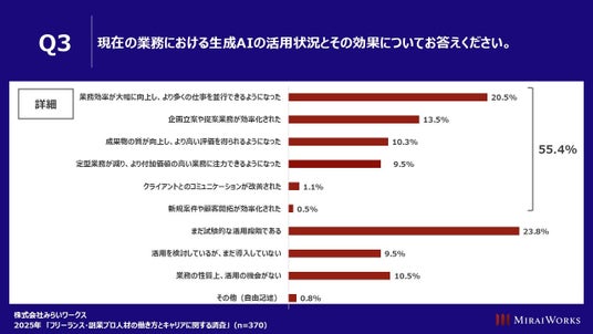 ~フリーランス新法後の変化なし71.6%、生成AIを活用して仕事効率化や改善につなげているプロ人材は55.4%~
